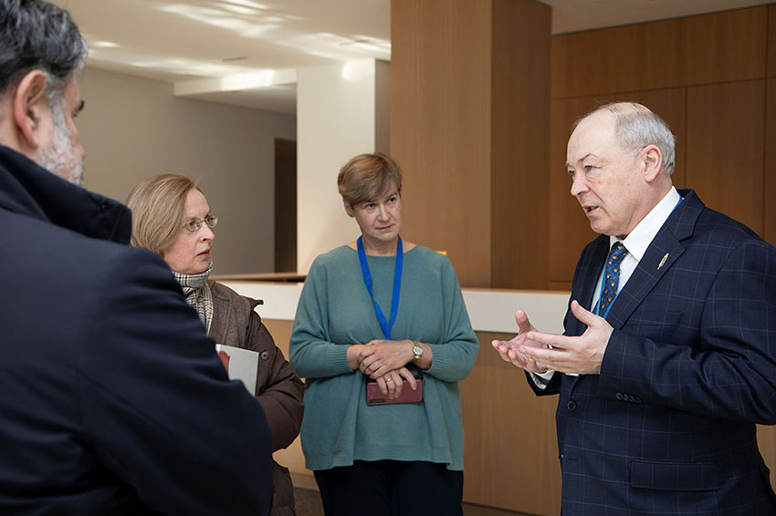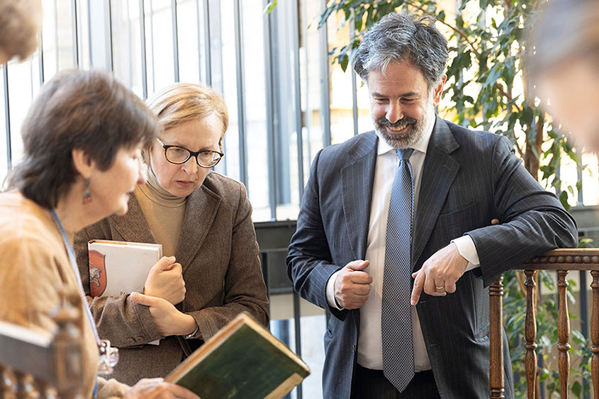 Nepriklausomybės atkūrimo dienos išvakarėse LMA Vrublevskių biblioteką savo vizitu pagerbė J. E. Italijos ambasadorius Emanuele de Maigret. Aukštą svečią lydėjo ambasadoriaus asistentė Lina Limantaitė ir Italijos kultūros instituto darbuotoja Giedrė Bagdžiūnaitė. Svečius sutiko direktorius dr. Sigitas Narbutas su kolege Ana Vencloviene. Rankraščių skyriaus darbuotoja dr. Justina Sipavičiūtė ir Retų spaudinių skyriaus bibliografė Violeta Radvilienė svečius supažindino su unikaliais dokumentinio paveldo objektais, liudijančiais apie šimtamečius Italijos ir Lietuvos kultūros ryšius. Susitikimo metu šeimininkai ir svečiai aptarė bendradarbiavimo perspektyvas ir sutarė dėl bendrų renginių, kuriais šiemet būtų pagerbta Lietuvos ir Italijos diplomatinių santykių užmezgimo 35 metinių sukaktis, taip pat kiti reikšmingi dviejų šalių bendrystę įamžinę įvykiai.
