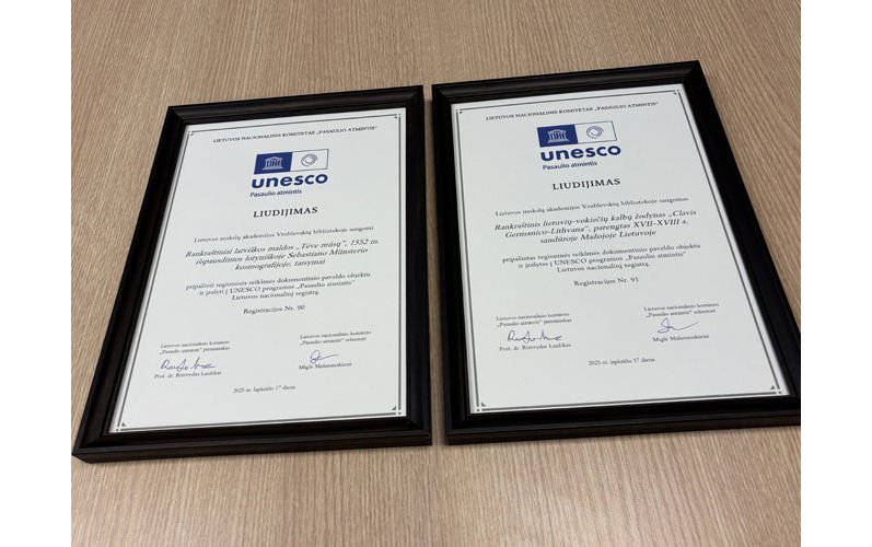 „Pasaulio atminties“ registras papildytas dviem unikaliais Vrublevskių bibliotekos dokumentais