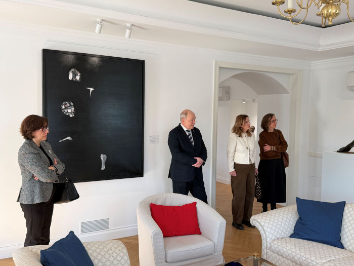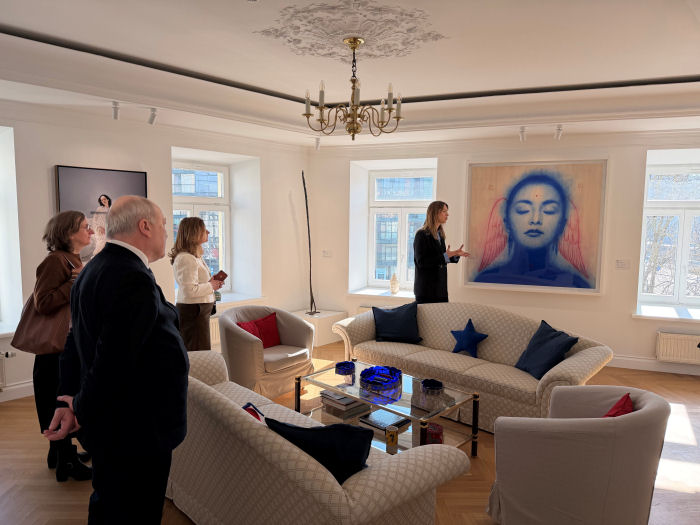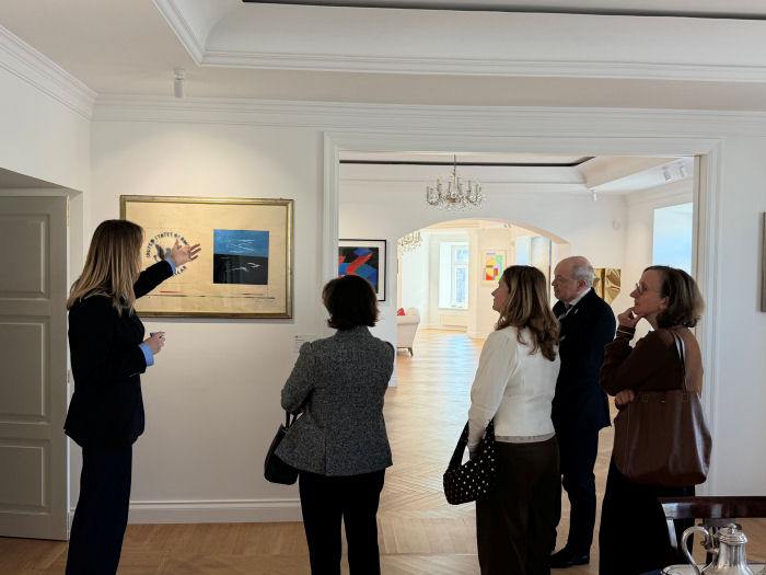J. E. Italijos ambasadoriaus Emanuele de Maigret kvietimu 2026 m. balandžio 14 d. Italijos ambasadoje apsilankė Bibliotekos direktorius dr. Sigitas Narbutas, direktoriaus pavaduotoja mokslui dr. Rima Cicėnienė, Dokumentų konservavimo ir restauravimo skyriaus vedėja Edita Keršulytė ir Komunikacijos skyriaus vedėja Inga Berulienė. Svečius šiltai priėmė J. E. Italijos ambasadorius, taip pat Italijos kultūros instituto darbuotoja Giedrė Bagdžiūnaitė. Priėmimo metu kalbėtasi dėl renginio, kuriuo šių metų rudenį bus pagerbta Lietuvos ir Italijos diplomatinių santykių užmezgimo 25 metų sukaktis, taip pat susipažinta su vertinga šiuolaikinių Italijos dailininkų kūrinių ekspozicija. Agnės Babrauskaitės nuotraukos.